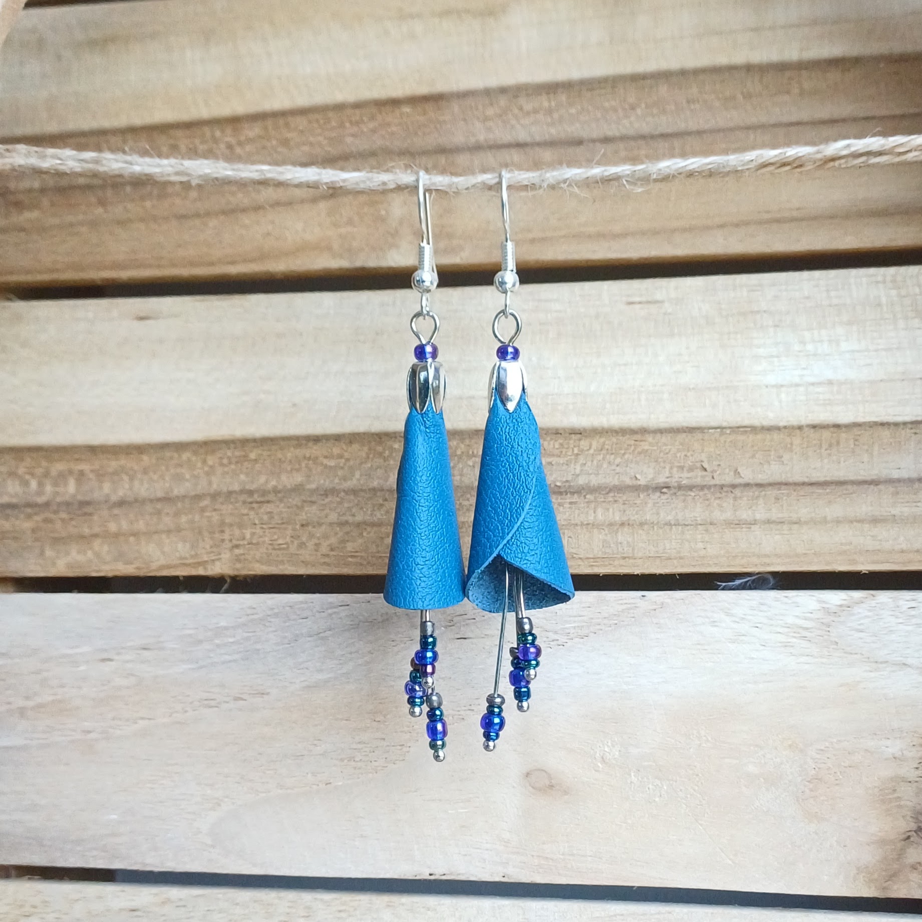 Boucles d’oreilles en d’agneau et perles de rocailles; apprêts en métal sans chrome ni nickel.