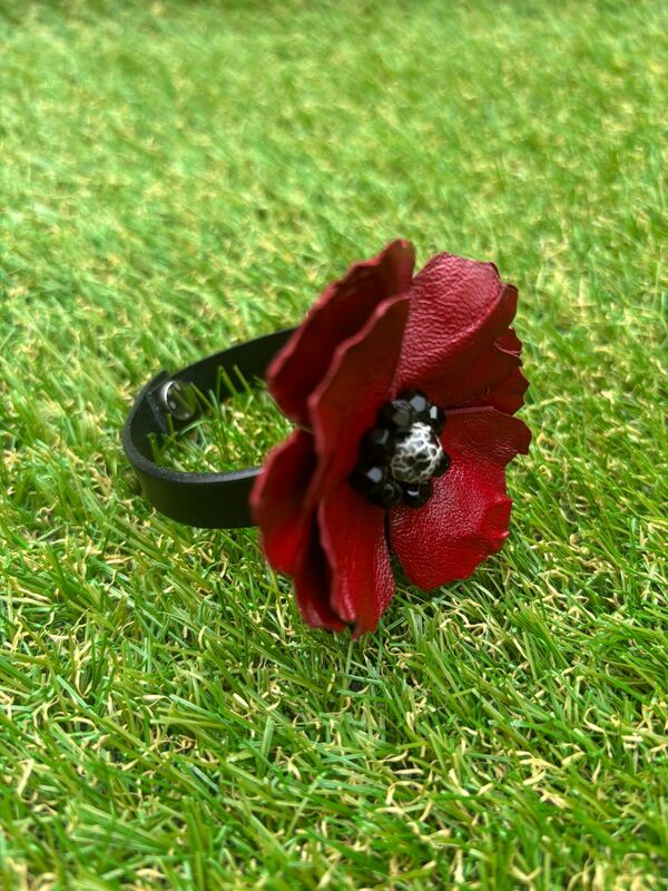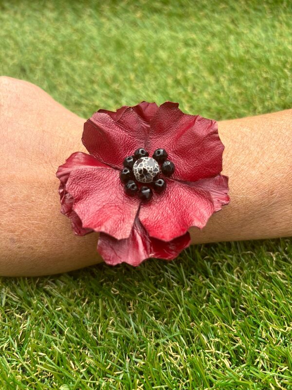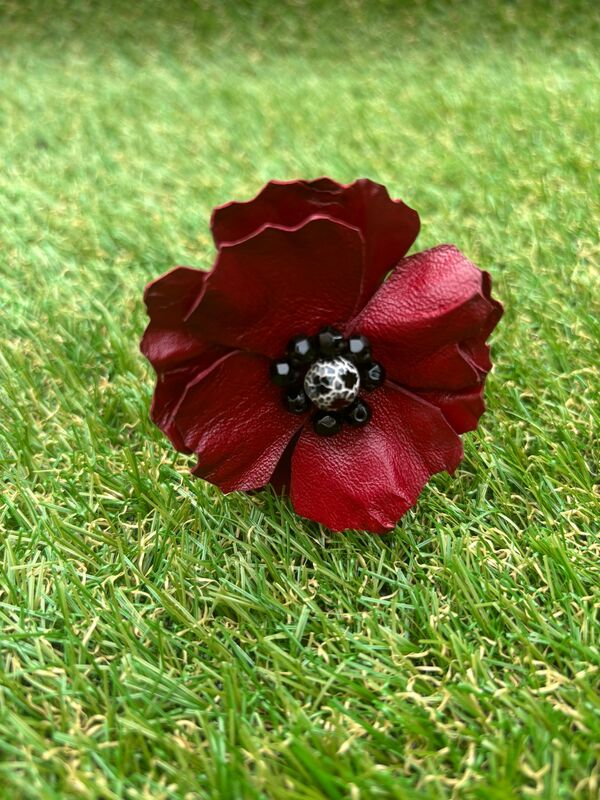 Fleur en cuir de chèvre, perles en résine multifacettes, perle fantaisie.
