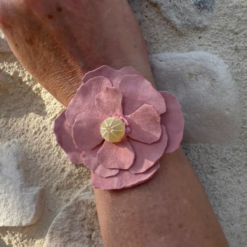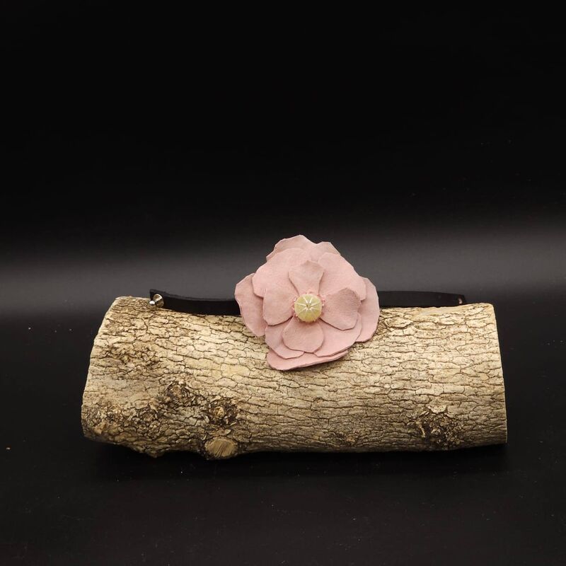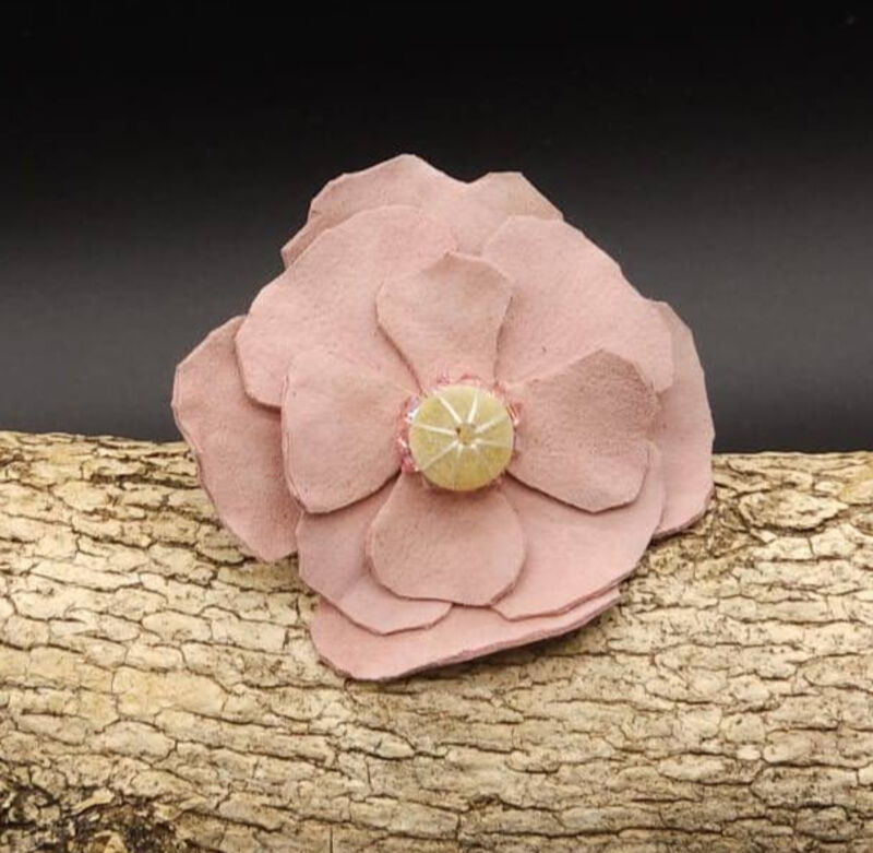 Fleur en cuir velours, perles  de swarovski, perle fantaisie.