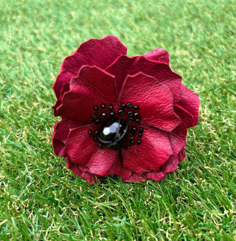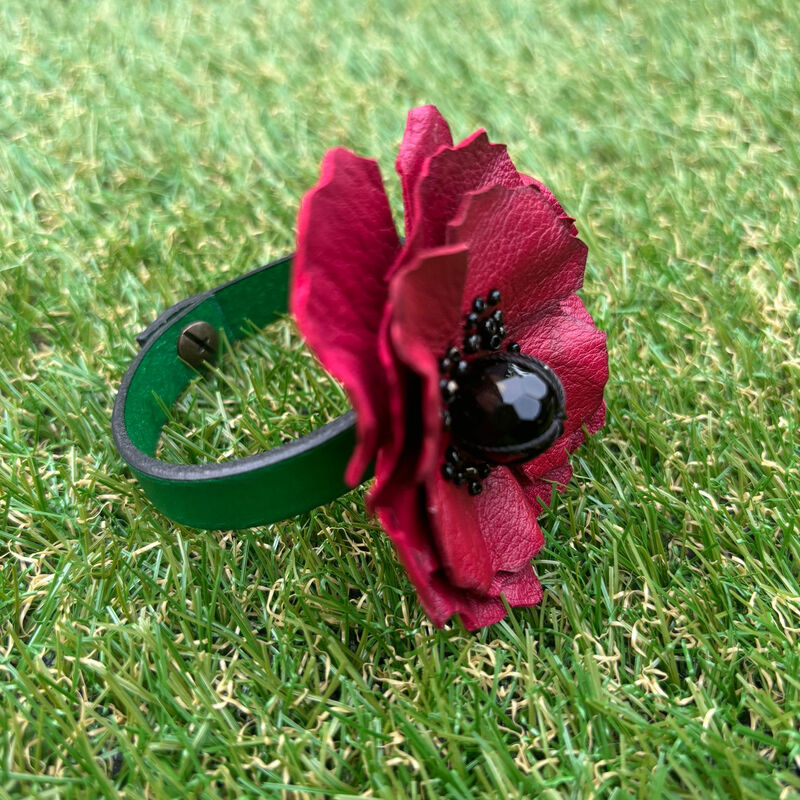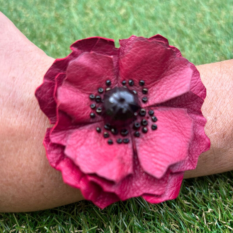 Fleur en cuir de chèvre, perles en résine multifacettes, perle fantaisie.