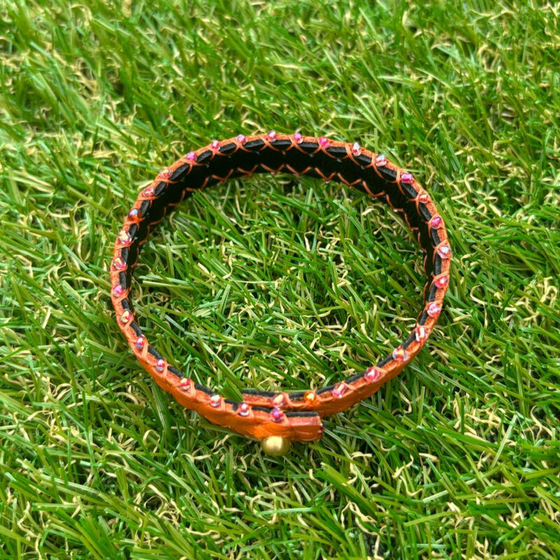 Bracelet en cuir, doublure en cuir, perles de rocailles.