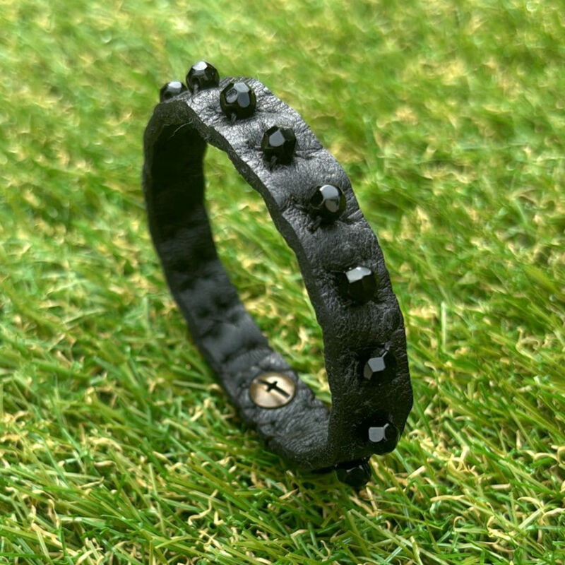 Bracelet en cuir, doublure en cuir, perles multifacettes.
