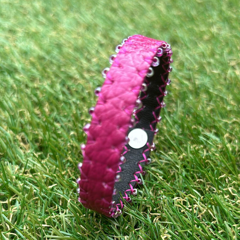 Bracelet en cuir, doublure en cuir, perles de rocailles.