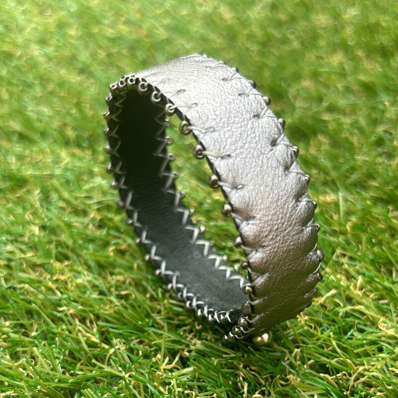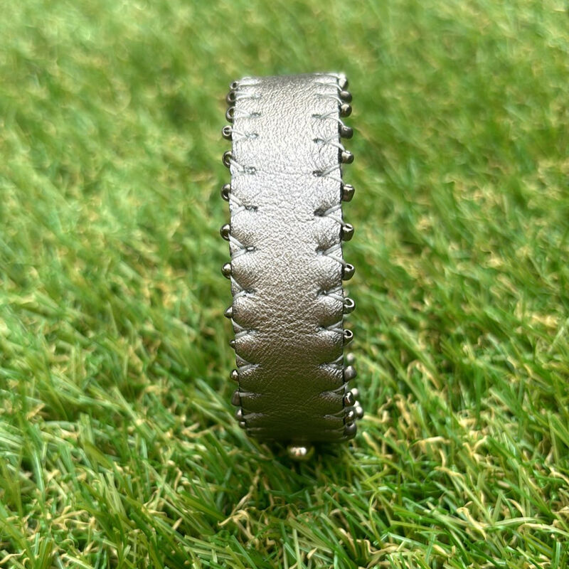 Bracelet en cuir, doublure en cuir, perles de rocailles.