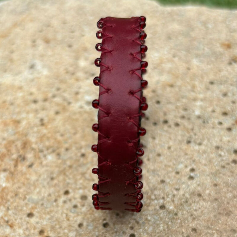 Bracelet en cuir, doublure en cuir, perles de rocailles.