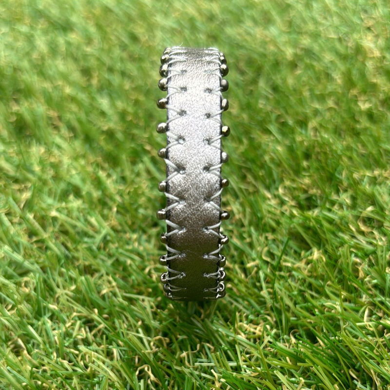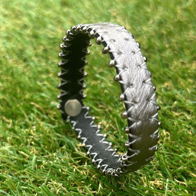 Bracelet en cuir, doublure en cuir, perles de rocailles.