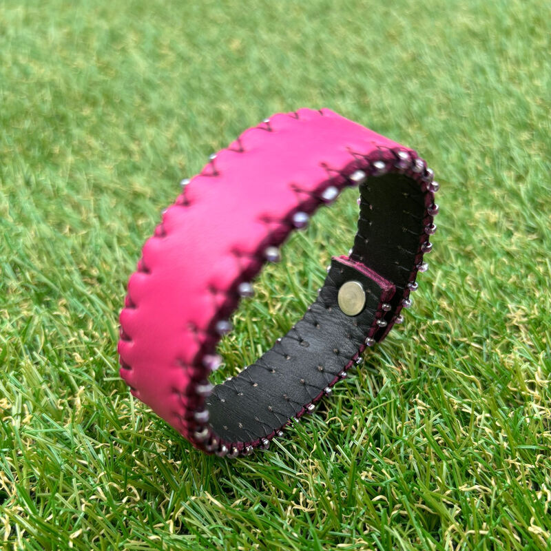 Bracelet en cuir, doublure en cuir, perles de rocailles.
