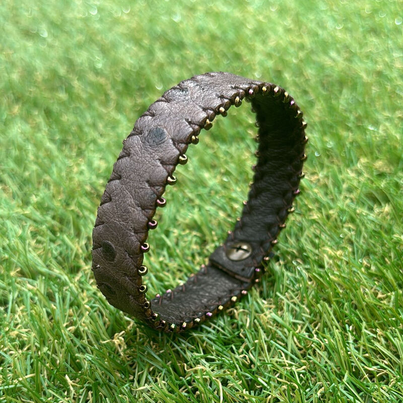 Bracelet en cuir, doublure en cuir, perles de rocailles.