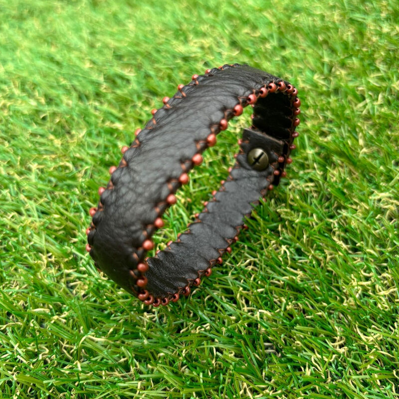 Bracelet en cuir, doublure en cuir, perles de rocailles.