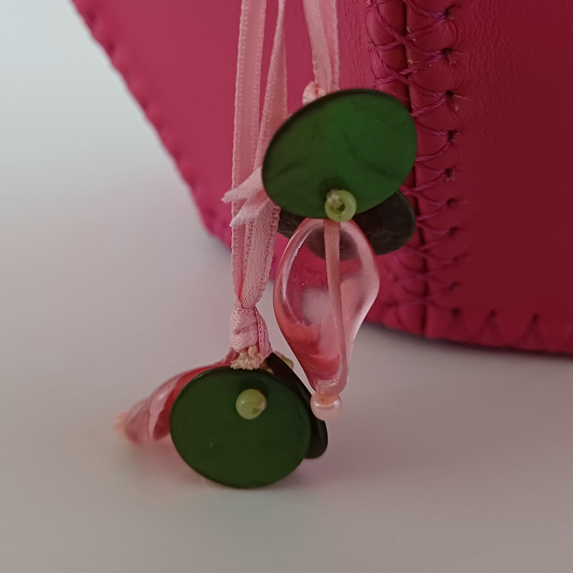 fermeture de la bourse avec ruban satin, finition en perles de verre, perles de nacre, perles de rocailles