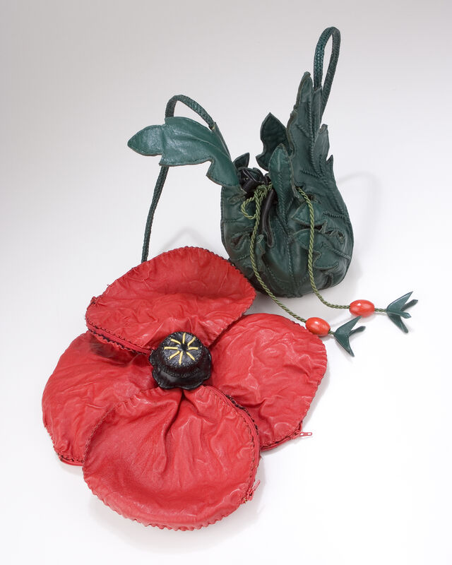 La fleur comprend 3 poches-pétales zippés et au cœur de la fleur est dissimulé un pilulier gainé de cuir.