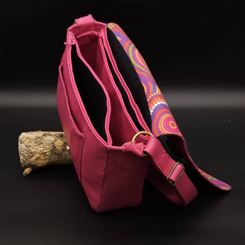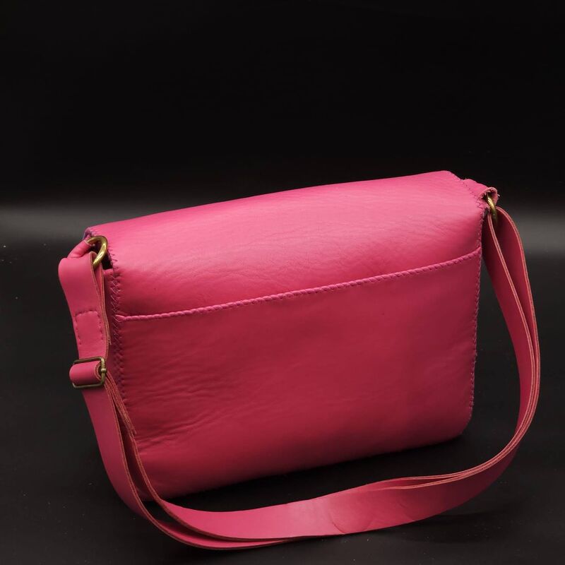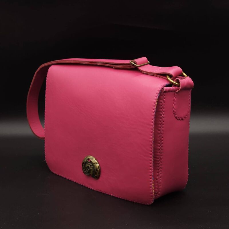Sac bandoulière en cuir de vachette. anneaux et décotion en métal, fermeture magnétique.
