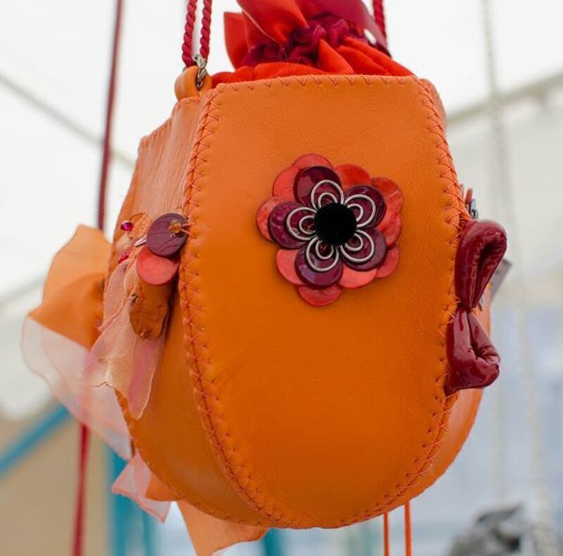 Dimensions : hauteur du poisson 20 cm, circonférence de la bourse 12cm, hauteur du sac 80 cm